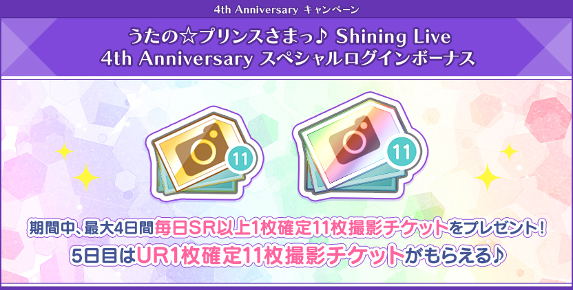 ■うたの☆プリンスさまっ♪ Shining Live 4th Anniversaryスペシャルログインボーナス開催!