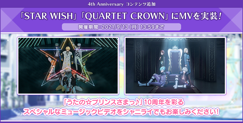 ■「STAR WISH」「QUARTET CROWN」にMVを実装!