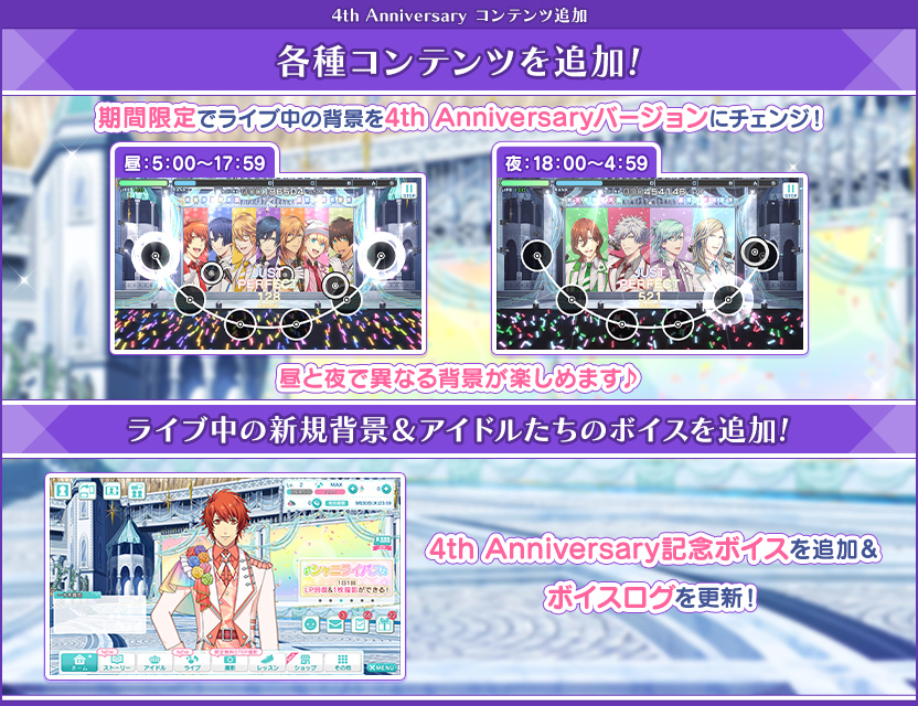 ■4th Anniversaryを記念したライブ背景や記念ボイスなどを追加!