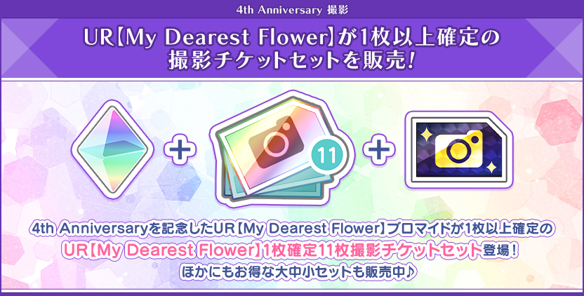 ■UR【My Dearest Flower】が1枚以上必ず獲得できる撮影チケットセット登場!4th Anniversaryを記念した4種類のセットを販売!