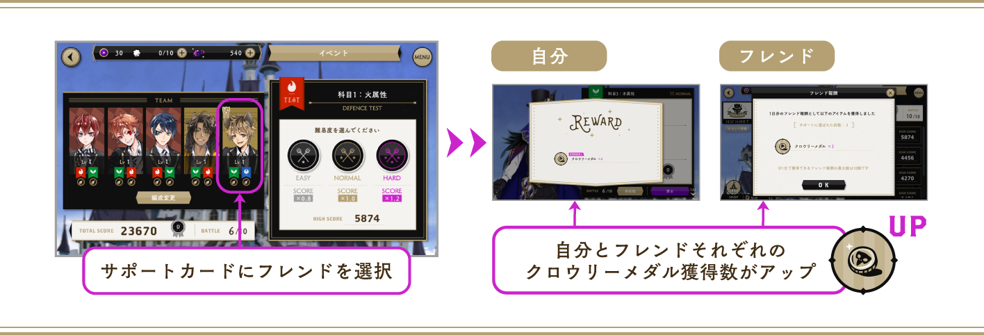 また、サポートカードに選択されたフレンドも、フレンド報酬として「クロウリーメダル」を1枚獲得できます。