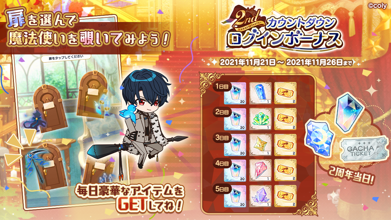 株式会社colyは、600万ダウンロードを突破した『魔法使いの約束』(iOS/Android)において、2周年特設本サイトの公開をお知らせいたします。