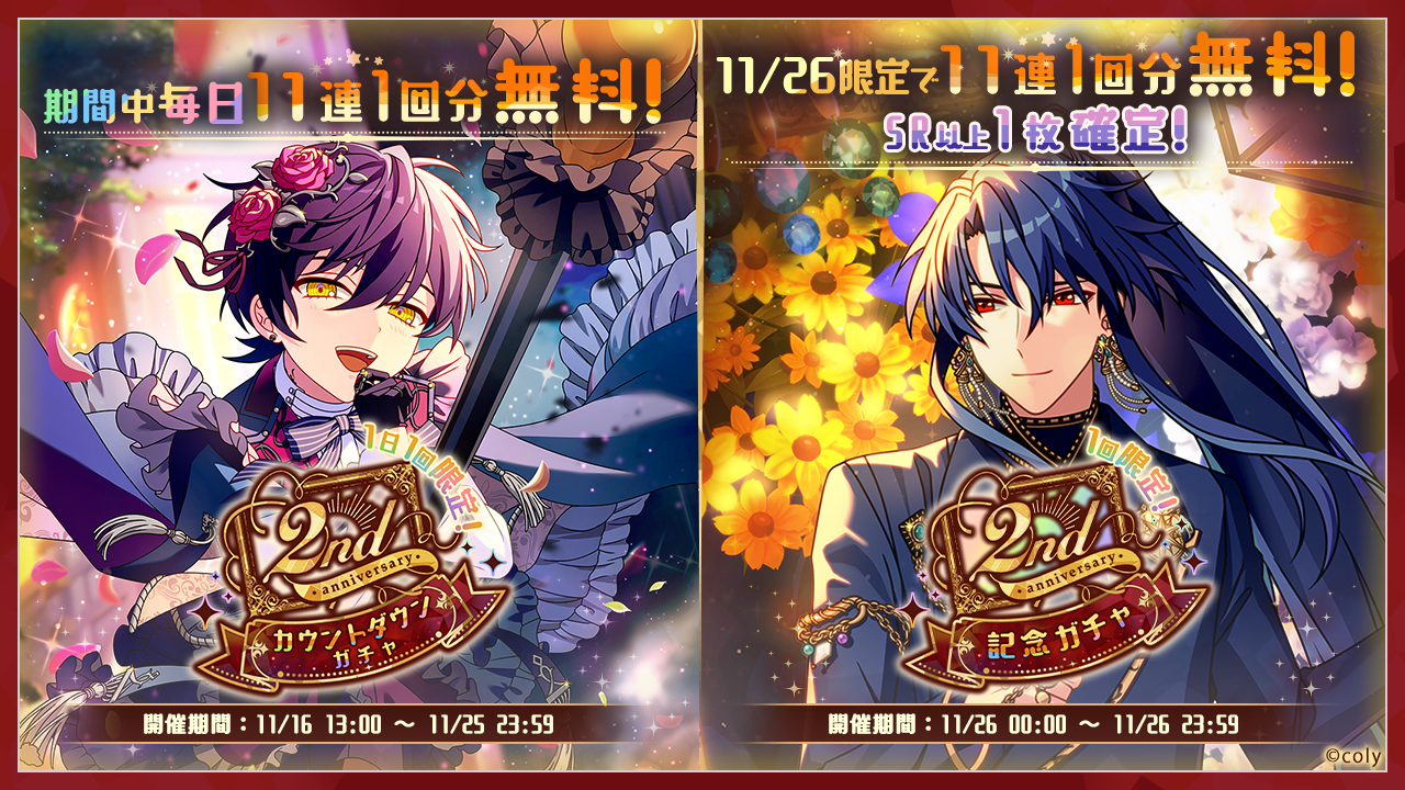 2nd Anniversaryカウントダウンガチャ 11/16 13:00~11/25 23:59
