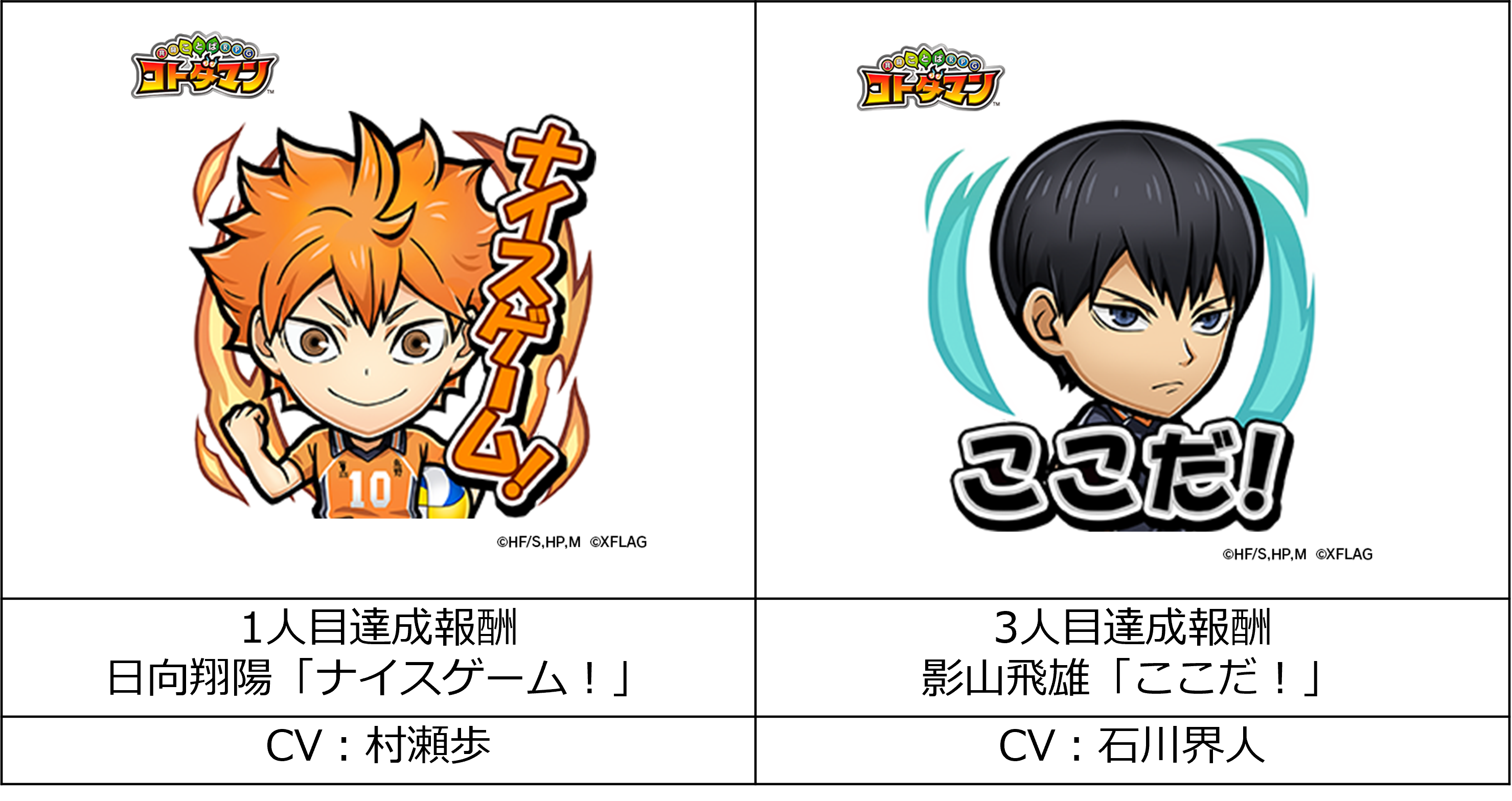 株式会社ミクシィが展開するエンターテインメント事業ブランド“XFLAG (エックスフラッグ)”は、スマホアプリの“ことば”で闘う新感覚RPG『共闘ことばRPG コトダマン(コトダマン)』において、アニメ『ハイキュー!!』との初コラボを11月26日より開催します。