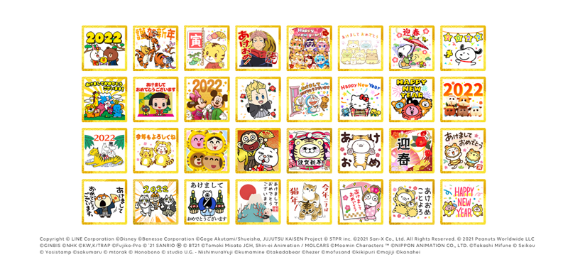 『あけおめスタンプ2022』では、2021年の人気キャラクターをはじめとし、2022年の干支である「寅」をモチーフにしたスタンプや、普段使いもしやすいスタンプが多数販売されます。