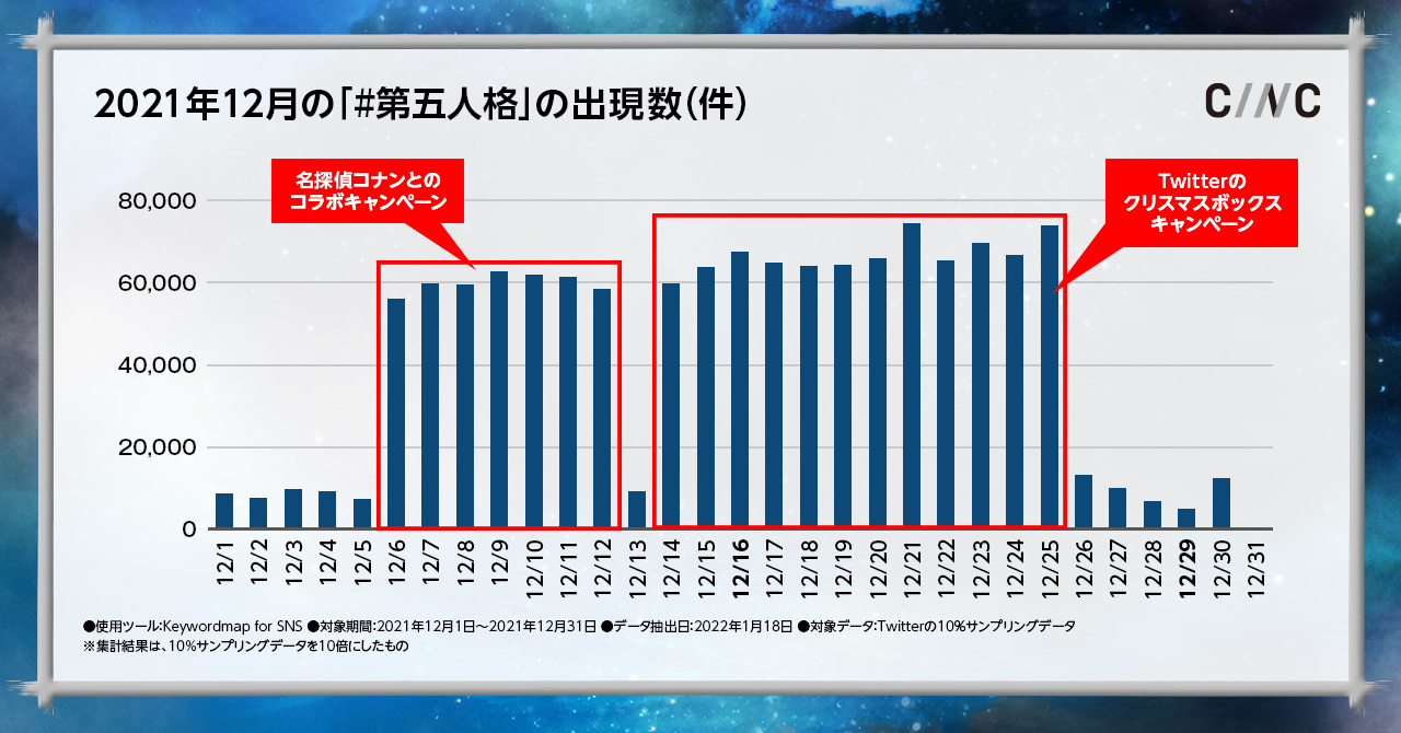 Twitter上で盛り上がった要因は「名探偵コナンとのコラボ」「Twitter社のクリスマスボックスキャンペーン」