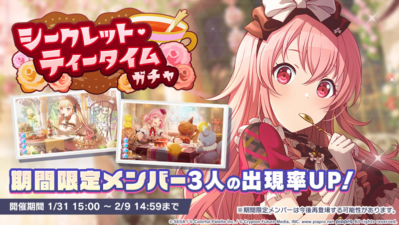 株式会社セガと株式会社Colorful Paletteは、iOS/Android向けリズム&アドベンチャー『プロジェクトセカイ カラフルステージ! feat. 初音ミク(プロジェクトセカイ)』で、1月31日よりゲーム内イベント“秘密の♡バレンタイン大作戦!”、“シークレット・ティータイムガチャ”が開催中です。
