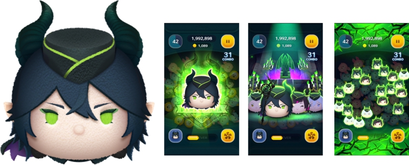 4月1日より、『ディズニー ツイステッドワンダーランド』に登場するキャラクター“ヴィル・シェーンハイト”、“イデア・シュラウド”、“マレウス・ドラコニア”がボイス付き新ツムとしてゲーム内に初登場します。名門魔法士養成学校“ナイトレイブンカレッジ”の寮長であるキャラクターたちの特徴を活かした演出やスキルにご注目ください。