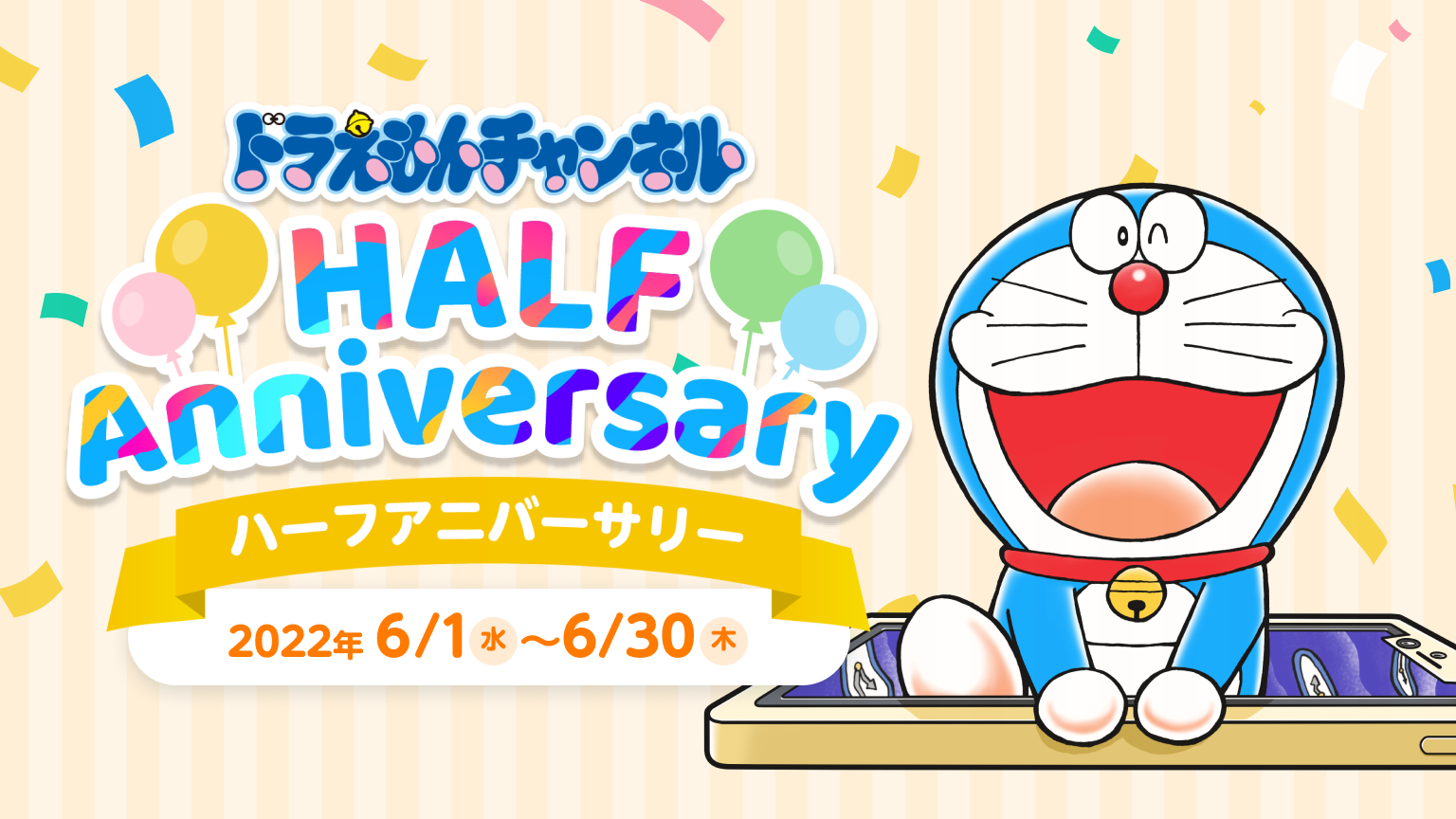 藤子・F・不二雄プロ(藤子プロ)は、2022年6月1日10:00~30日の期間、ドラえもん公式アプリ『ドラえもんチャンネル』にて“ハーフアニバーサリーキャンペーン”を開催いたします。