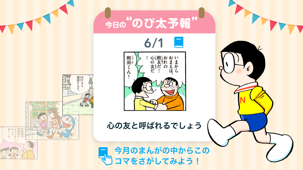 これまでオールマイティーパス会員向けに月間30本のまんがを配信してまいりましたが、6月はその倍の60本の配信を実施いたします。リリース初月(2021年12月)に配信していたテーマ“ドラえもん大活躍”30本と6月のテーマ“ジャイアン様のお通りだ!”30本の合計60本です。