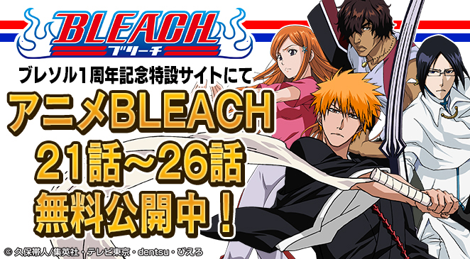 『ブレソル1周年記念大感謝祭』特設サイトにて、TVアニメ『BLEACH』を無料配信。配信されるのは『尸魂界(ソウル・ソサエティ)篇』の冒頭6話分です。