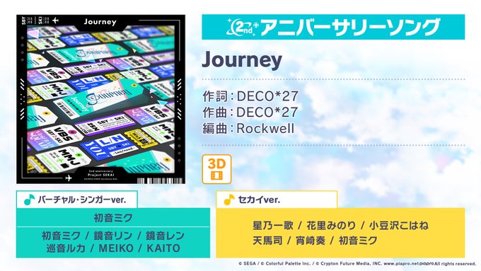「Journey」収録決定📣✨プロジェクトセカイ2周年を記念した書き下ろし楽曲になります🎉