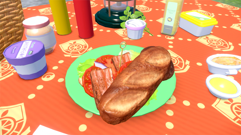 準備ができたら具材をつかんで、パンの上にバランスよく乗せていきます。ポケモンがサンドウィッチを食べると、ポケモンの体力が回復するだけでなく、冒険に役立つ嬉しい効果を得られることもあります。