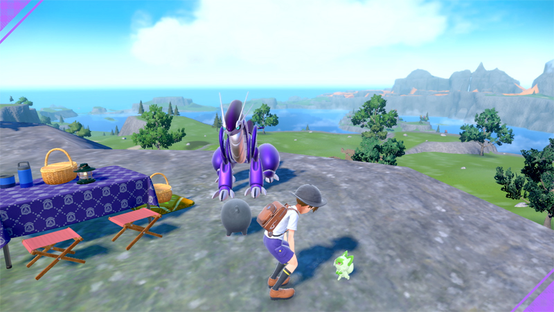 ピクニックを始めると、手持ちのポケモンや、一緒に冒険している伝説のポケモンであるコライドン/ミライドンがフィールドに勢ぞろいします。
