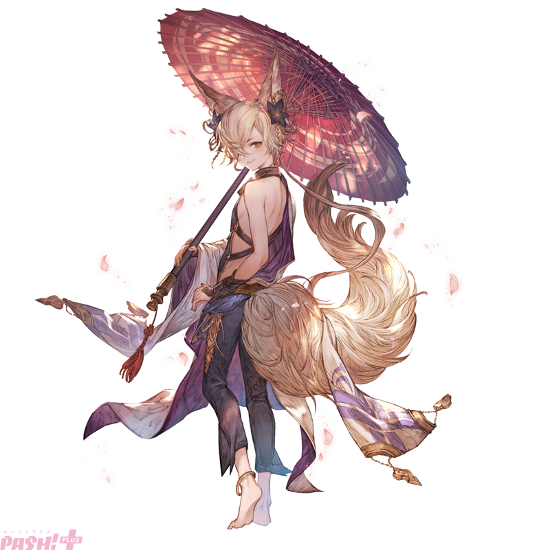 神器と舞を継承する王家の末裔にして、“九尾の依り代”として死ぬために育てられたという『グラブル』の世界でもトップクラスにハードな境遇の少年エルーン。そのせいか年齢に対して不相応に大人びた姿は、体の細さも相まってどこか色っぽい……もとい危うさを感じさせます。