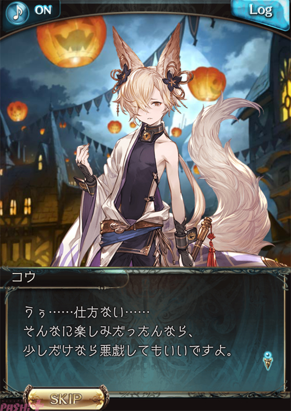 ▲画像は上からSSレア [千年を語る者]コウ フェイトエピソード、ハロウィンのエピソード(2年目)より。ユエルにからかわれたときとは少し違った反応に、何かドキッとしてしまいます。