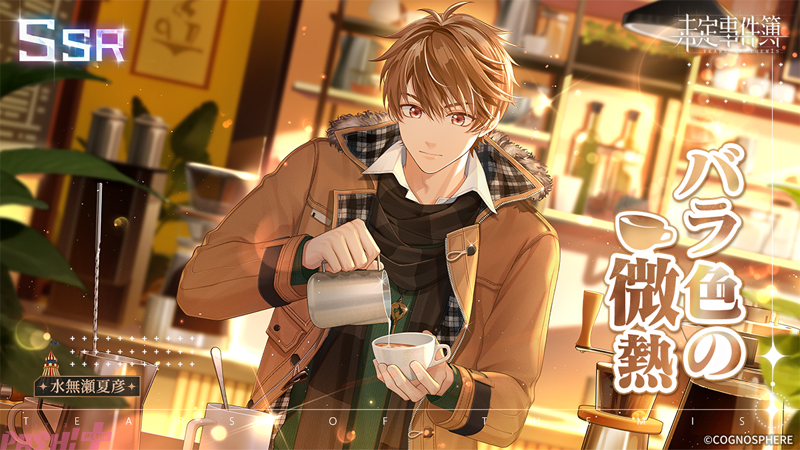 イベント限定の「女神の影“雪色の秘密”」の期間中は、水無瀬夏彦SSR“バラ色の微熱”、森月黎SSR“弓弦に落ちた影”の出現確率がUPします。