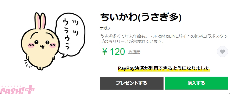 LINEが運営するコミュニケーションアプリ『LINE』内の公式スタンプショップにて『ちいかわ(うさぎ多)』が配信中です。