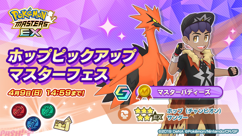 3月2日から、“ホップピックアップ マスターフェス”を開催します。本バディーズサーチでは、“★5ホップ(チャンピオン)&サンダー”が登場します。また、本バディーズは、バディストーンボード拡張済、“★6EX”解放済の状態で登場します。