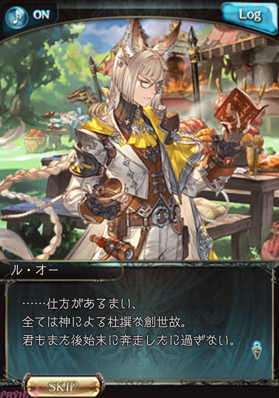 光の理であり、「白」の名を冠する竜。歪な創世を果たした空の世界を正すことを望むその強き意思は、楔として在らんとする志故か、か弱き空の命への慈悲故か。いずれにせよ、彼は空の世界の在るべき姿と存続を望む。(ルリアノート登場人物紹介 SSレア[六竜の『白』]ル・オー より)