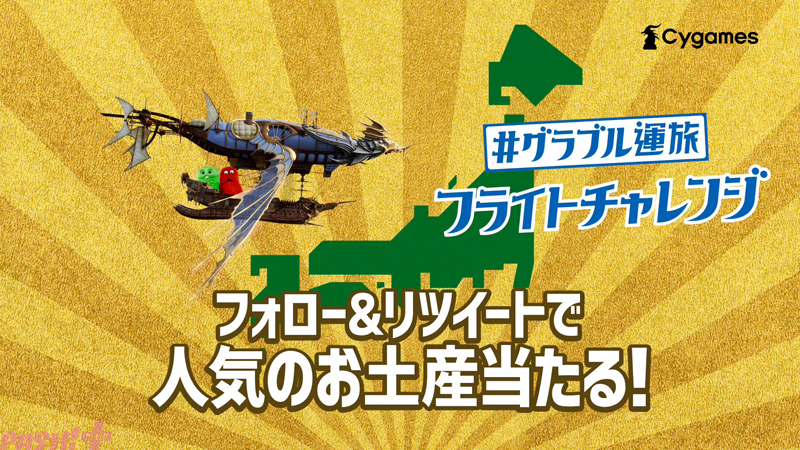“グラブル運旅”にあわせて、Twitterキャンペーンも同時開催します。キャンペーン期間中、『グランブルーファンタジー』公式Twitterをフォローして、対象のキャンペーンツイートをRTすると参加できるキャンペーンです。その場で結果が分かるリプライが届き、当選すると全国で人気のお土産が抽選で毎日100名、合計700名に当たります。