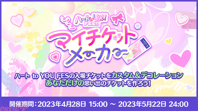 ハート to YOU FES の入場チケットをカスタム&デコレーションして、思い出のチケットを作れます。FESで遊べば遊ぶほどデコレーションを入手できます。