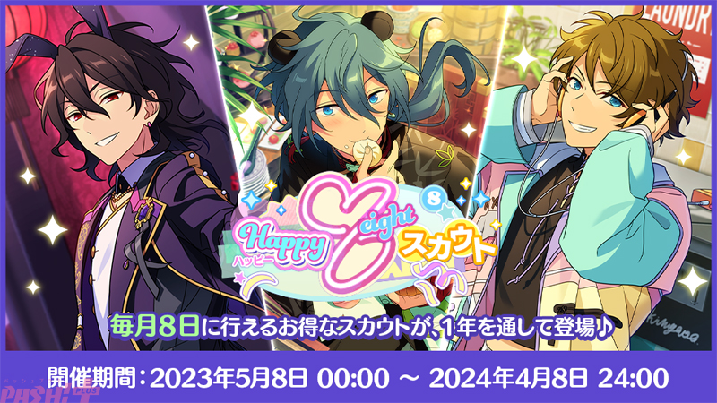 毎月8日に行えるお得なスカウトが、1年を通して登場。有償/無償問わず88ダイヤで、★5確率8%の3連スカウトが行えます。