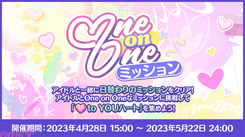 アイドルと一緒に日替わりのミッションをクリア! アイドルとOne on Oneなミッションに挑戦して“to YOU ハート”を集めましょう。