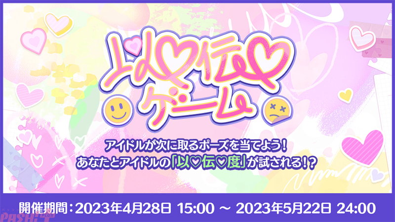 アイドルが次に取るポーズを当てよう! あなたとアイドルの“以♡伝♡度”が試される!? 連続回数に応じてアイドルの“to YOU ハート”を入手できます。1日1回無料で遊べるほか、ライブやフェスプロデュースで集まるチケットで遊べます。