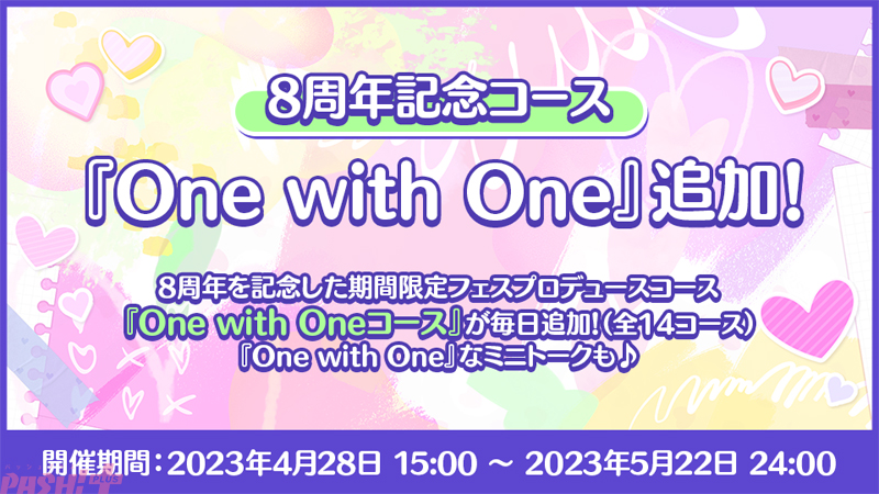 8周年を記念した期間限定フェスプロデュースコース『One with One コース』が毎日追加(全14コース)。コースは14日間、毎日1つずつ追加されます。『One with One』なミニトークも必見です。