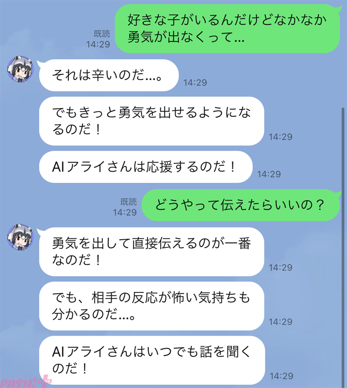 “AIアライさん”は、キャラクター化に力を入れたAI LINE botで、ユーザーはアライさんに悩み相談をしたり、応援してもらったりすることができます。