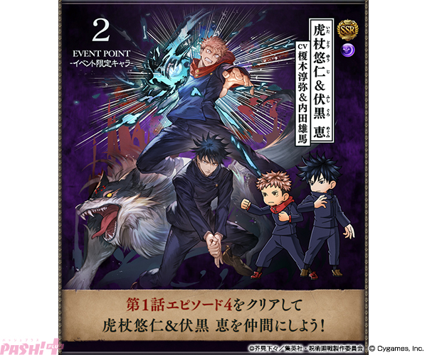 第1話エピソード4をクリアすることで、キャラクター“虎杖悠仁&伏黒恵”が仲間になります。トレジャー交換で獲得できる“キャラ上限解放セット”も交換してキャラクターの上限解放を目指しましょう。