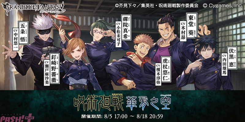 Cygamesとサイゲームスの子会社であるCyDesignationとの共同制作によるソーシャルゲーム『グランブルーファンタジー』にて、『呪術廻戦』とのコラボレーションイベント“呪術廻戦 華胥之空(かしょのそら)”が8月5日17:00~8月18日20:59の期間実施されます。