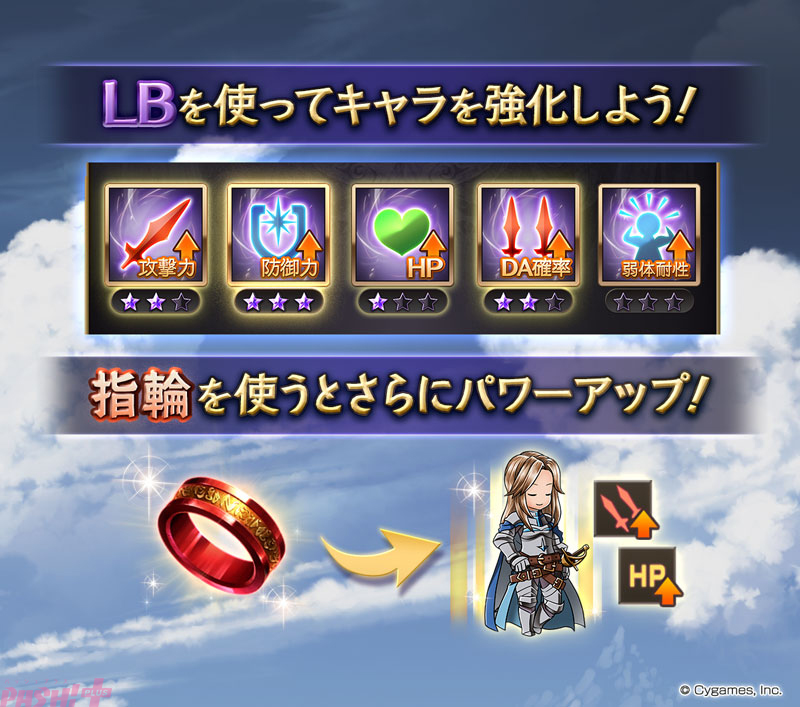 提供期間中に対象のキャラ解放武器を入手した場合、初回入手時のみ新規追加キャラ解放ボーナスとして“至極の指輪”が1つもらえます。その際、解放されたキャラはLB(リミットボーナス)が30付与された状態で仲間になります(LB Classに変化はありません)。