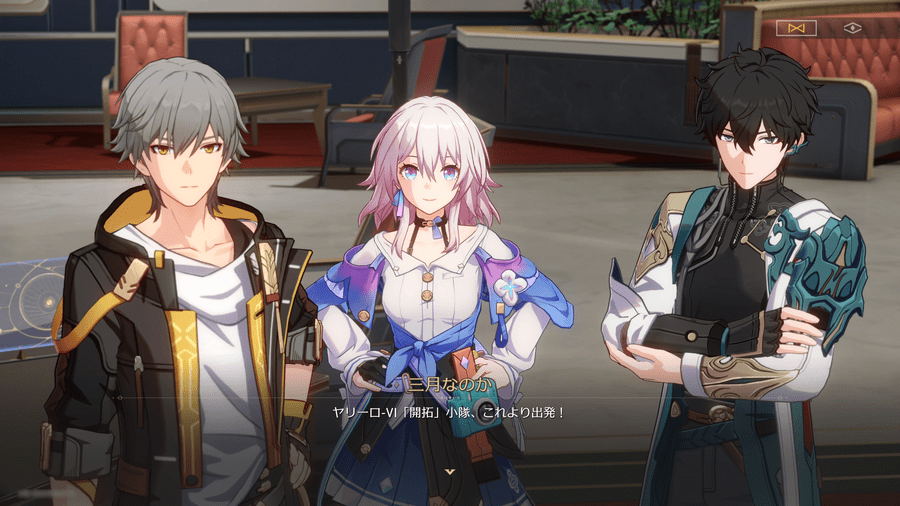 ▲こちらは筆者お気に入り、若者三人組の出発シーン。左から開拓者、なのか、丹恒です。