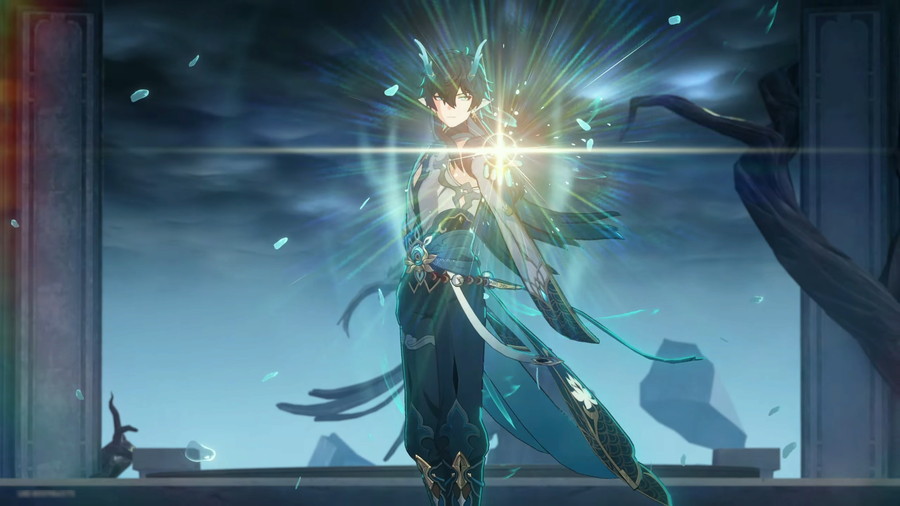 ▲飲月としての力を解放した丹恒の姿。仲間たちと羅浮を護るため、封じられた地への道を開きます。海を割った彼の神々しい姿は非常に印象的。