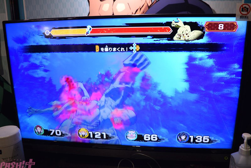 鬼と戦うミニゲームは、実際の鬼との戦闘を感じさせるアツい内容で、ワイワイ遊べる他のものとはまた違った体験を楽しめます。今回体験できた手鬼戦は、相手からの攻撃を捌き、攻撃を叩き込むというもので、ミニゲームとして直感的に遊べる内容ながらアニメでの戦闘さながら緊張感も感じる内容です。
