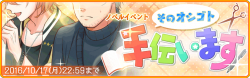 イベントはアプリ版、GREE版、Mobage版で同時開催され、チェックのスーツアバターなどが手に入る「お手伝いガチャ」も実施される。イベントとガチャどちらも、2016年10月17日22:59までの期間限定となっているので、気になる人は早速始めよう。