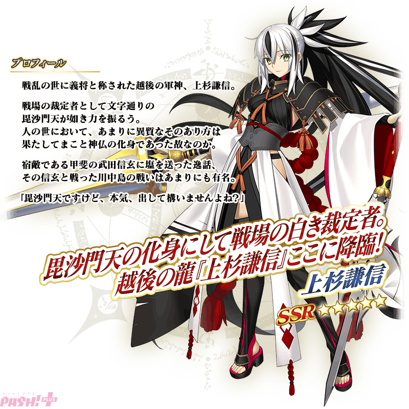 FGO PROJECT(ノーツ、アニプレックス、ラセングル)は、スマートフォン向けFateRPG『Fate/Grand Order』にて、2023年12月6日(水)18:00から12月19日(火)12:59までの14日間、新登場の期間限定サーヴァント「★5(SSR)上杉謙信」、「★4(SR)永倉新八」を含む3騎のサーヴァントをピックアップする「ぐだぐだ超五稜郭 上杉謙信ピックアップ召喚」を開催します。