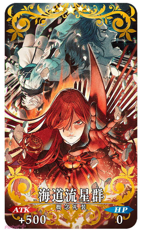 期間限定概念礼装の「★5(SSR)海道流星群」、「★4(SR)北の柳」、「★3(R)富士よりもなお遠くまで」を装備することで、本イベントにおける「イベントアイテム」のドロップ獲得数がアップします。