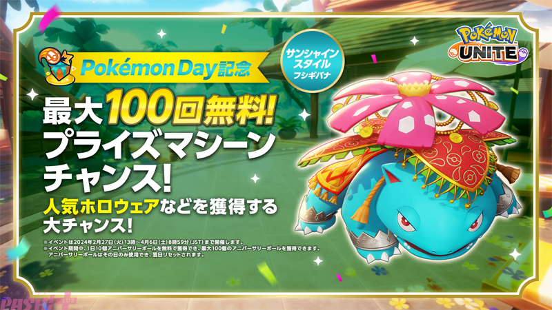 さらに、Pokémon Dayを記念して「最大100回無料!プライズマシーンチャンス!」や特別なギフトコードプレゼントを実施。ギフトコードはゲーム内にて入力すると、誰でもミライドンでプレイができるようになります。
