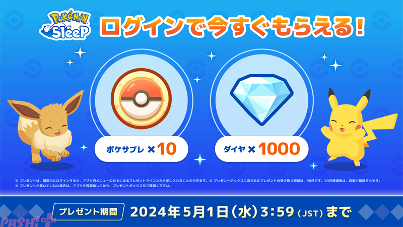2024年5月以降順次、エンテイ・スイクンに出会えるイベントも開催予定です。また、Pokémon Dayを記念して、2月27日(火)本日より、「ダイヤ」1,000個、「ポケサブレ」10個をプレゼント。この機会に「ダイヤ」を使って便利などうぐを手に入れ、カビゴンたちとの睡眠リサーチを楽しんでみては?