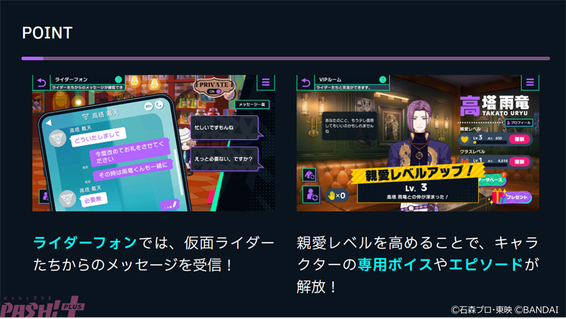 『仮面ライダーギーツ』脚本の高橋悠也氏が綴る、完全オリジナルストーリー! 全14章の大ボリュームで贈るメインストーリー第1部は、全編フルボイス&フルモーションのLive2Dで臨場感たっぷりに演出。