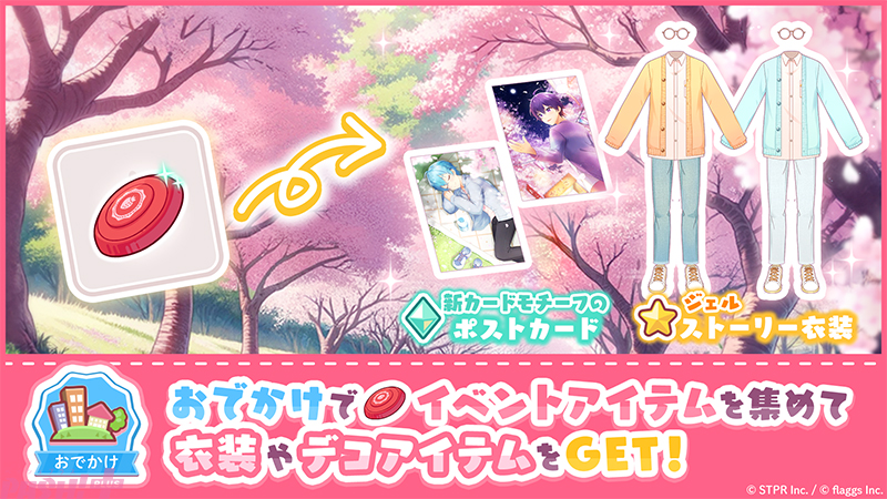 イベント前編に引き続き、「おでかけ」でイベントアイテムを集めて、新たに追加されたメインストーリーを読み進めたり、衣装やデコアイテムと交換できるイベントになっています。