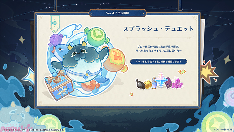 COGNOSPHEREは、HoYoverseが配信するマルチプラットフォーム対応オープンワールドRPG『原神(げんしん)』において、Ver.4.7「永き夢を紡いで」が6月5日(水)にリリースされることを発表しました。