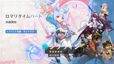 6月25日(火)より、イベント祈願・キャラクター「ロマリタイムハート」、イベント祈願・キャラクター2「衆の水の頌歌」を開催しました。期間中、ピックアップキャラクターの出現確率が大幅にUPします。