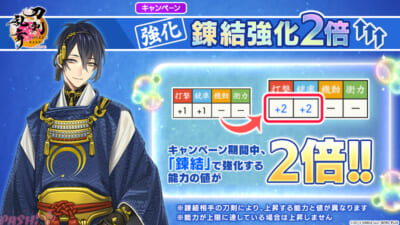 「錬結強化2倍キャンペーン」では、期間中に行った「錬結」にて上昇する各能力の値が2倍に増加します。