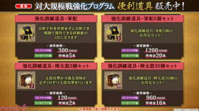 「対大規模戦強化プログラム」専用便利道具を期間限定で販売中
