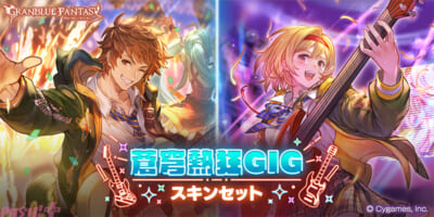 8月31日(土)12:00より、「蒼穹熱狂 GIG スキンセット」を販売いたします。本キャンペーンでは「レジェンド10連ガチャチケット」1枚と「蒼穹熱狂 GIG スキン」のセットを、3,000モバコイン、3,000グラブルコイン、3,000GREEコイン、または3,000DMMポイントで購入することができます。1人1回のみの販売です。