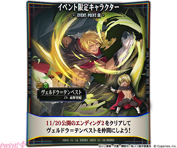 11月20日(水)にはイベントストーリーが追加され、物語は結末へ。エンディング2をクリアすることで、キャラクター「ヴェルドラ=テンペスト」が仲間になります。